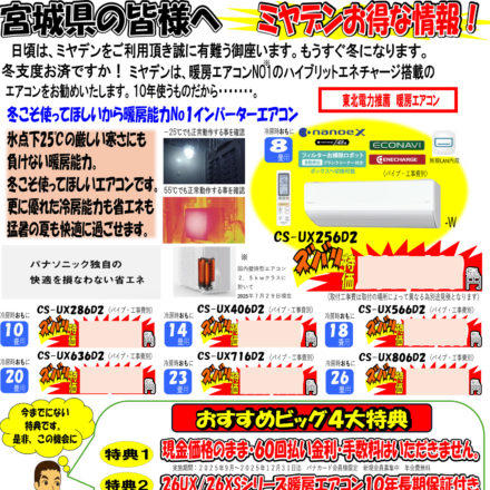 ミヤデン全店でパナソニック暖房エアコンキャンペーン開催中です!