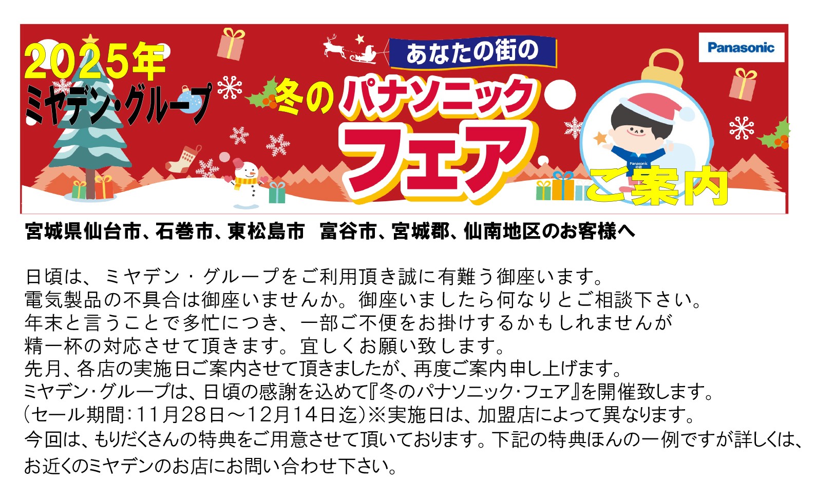 ミヤデン・グループは、日頃の感謝を込めて『冬のパナソニック・フェア』を開催いたします。
